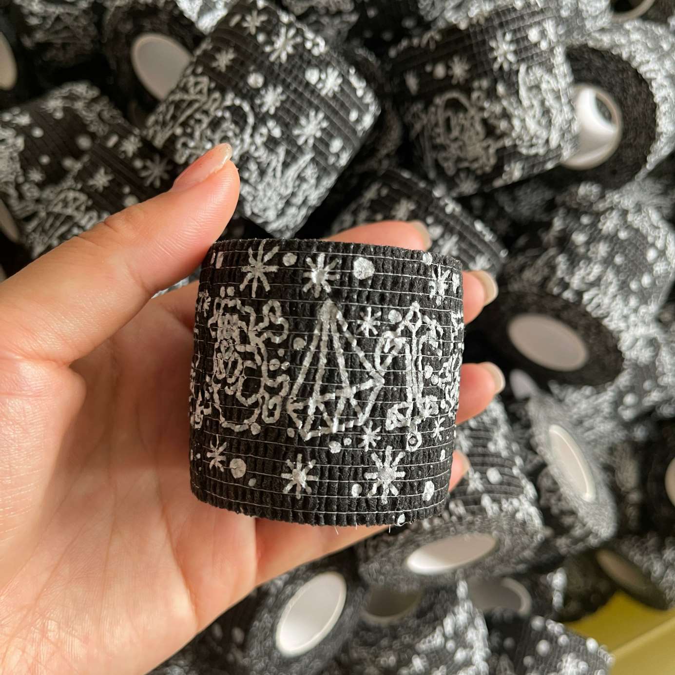స్వీయ-అంటుకునే కట్టు పచ్చబొట్టు మెషిన్ గ్రిప్ ర్యాప్ టేప్ వారి పచ్చబొట్టు పనికి ఉత్తమమైన పట్టును పొందడానికి సహాయపడుతుంది. హ్యాండిల్ జారకుండా నిరోధించండి మరియు ఖచ్చితమైన పచ్చబొట్టు నమూనాను ఏర్పరుస్తుంది. పచ్చబొట్టు కళాకారుడి టూల్కిట్లో ఇది అవసరం.